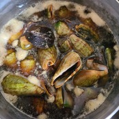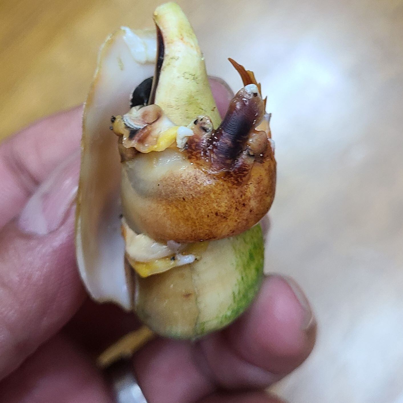 採れたてのチャンバラ貝は肝に砂を含んでおり、食べるとジャリジャリとします。